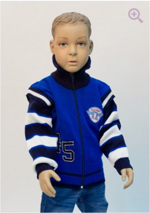 Ростовка:104-110.Кофта на молнии, с отложным воротником, рукава в полоску контрастного цвета. Модель дополнена вышивкой на груди
