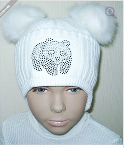Шапка на меху с короткими ушками и отворотом, с двумя меховыми бубонами