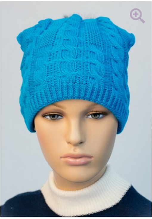 Шапка на меху без ушек с одним меховым бубоном, удлиненная. Дополнена косами Подробнее