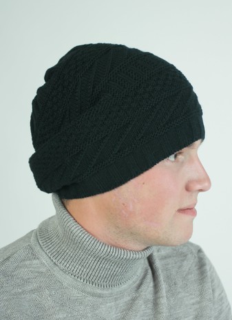 Спортивная однотонная шапка, выполнена аранским узором.