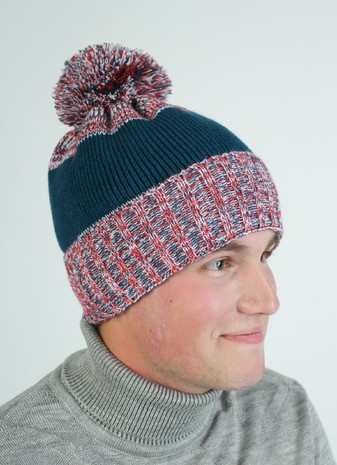 Мужская меланжевая шапка с большим бубоном и широким отворотом