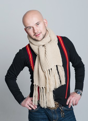 Теплый, мягкий длинный шарф. Имитирующий ручную вязку.