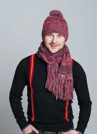 Комплект состоит из шапки и длинного шарфа с кистями. Рекомендуется как мужчинам, так и женщинам