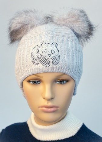 Шапка на меху с короткими ушками и отворотом, с двумя меховыми бубонами.