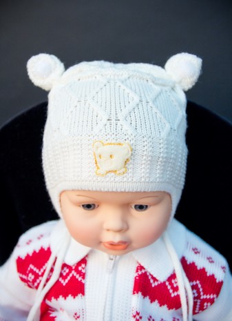 Шапка одинарная с завязками с двумя бубонами в виде ушек с шариками, для малышей