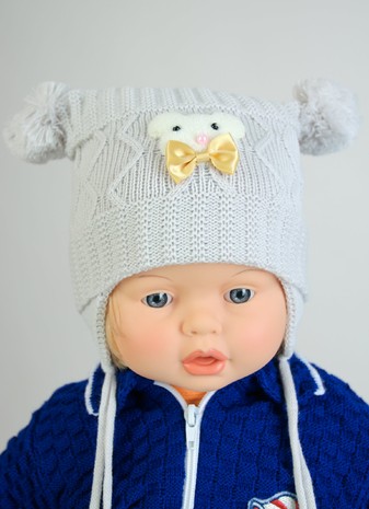 Двойная детская шапка с двумя бубонами и завязочками