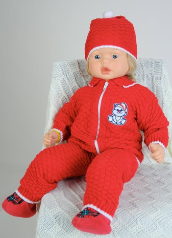 Детский костюм тройка: шапка, штанишки и кофта на молнии. Костюм дополнен вышивкой в виде львенка