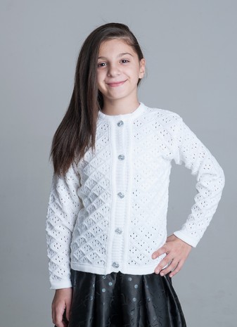Детская, подрастковая кофта на пуговицах, выполнена ажурным рисунком.