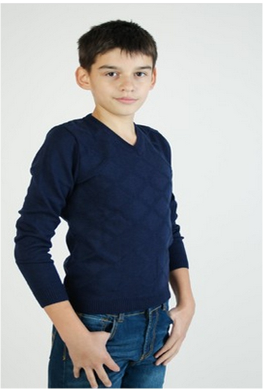 Детский, подростковый пуловер в V-образным вырезом горловины, дополнен узором "ромбы