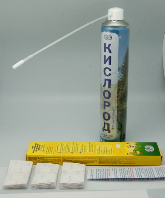 1) кислородный баллончик <<Сфера>> 16 л - 5 шт., содержимое: 95% - кислород, 5% - азот; 2) смесь для приготовления кислородного коктейля на основе яичного белка, 300 г - 1 шт.; 3) распылитель с трубками - 3 шт.; 4) инструкция - 1 шт.