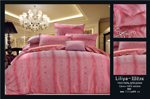КПБ 1,5-х спальный Шелк розового цвета с рисунком в виде линий. Комплект состоит из пододеяльника, простыни и наволочки