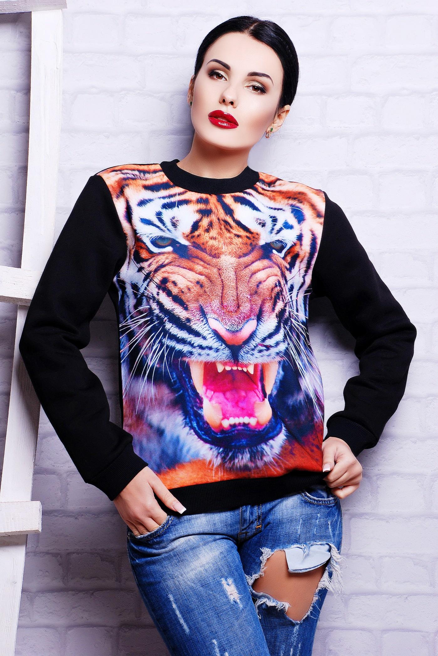 Стильный и эффектный свитшот станет достойным украшением Вашего модного и современного гардероба. Модель с округлой горловиной, длинным рукавом, оригинальным принтом и эластичным низом с манжетами. Качественный материал и комфортный крой подарят Вам тепло и уют в холодную погоду.