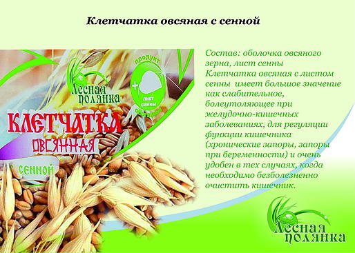 Пищевая ценность в 100г продукта: Энергетическая ценность 1523 кДж / 363 ккал Белок 17,9 г Жир 8,7 г Углеводы 44,1 г Пищевые волокна 19,0 г в том числе бета-глюкан 6,0 г Тиамин (витамин B1) 0,747 мг Фосфор 678 мг Железо 6,8 мг Магний 205 мг Цинк 4,7 мг Рекомендации к применению: За 30 мин. До еды. Смешать 1 - 2 ст. ложки клетчатки с не жирным кефиром, йогуртом, густым соком, киселем и т.д., настоять 2 - 3 мин. и выпить