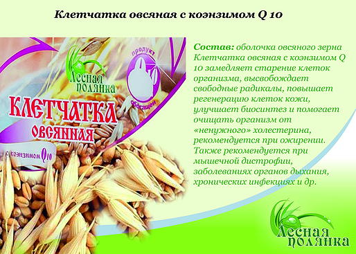 Пищевая ценность в 100г продукта: Энергетическая ценность 1523 кДж / 363 ккал Белок 17,9 г Жир 8,7 г Углеводы 44,1 г Пищевые волокна 19,0 г в том числе бета-глюкан 6,0 г Тиамин (витамин B1) 0,747 мг Фосфор 678 мг Железо 6,8 мг Магний 205 мг Цинк 4,7 мг Рекомендации к применению: За 30 мин. До еды. Смешать 1 - 2 ст. ложки клетчатки с не жирным кефиром, йогуртом, густым соком, киселем и т.д., настоять 2 - 3 мин. и выпить.