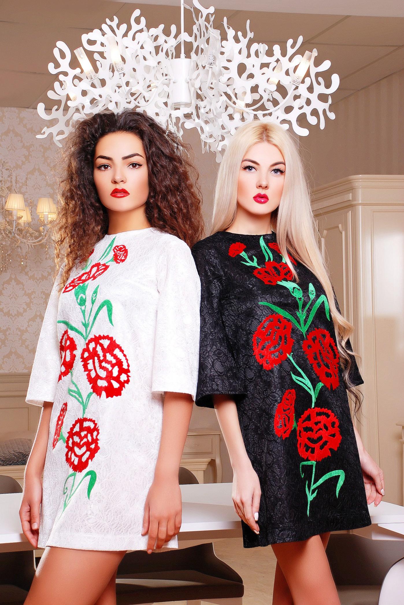Яркое молодежное платье свободного кроя с округлой горловиной, свободным рукавом 3/4 и потайной молнией на спинке (длина молнии 40 см). Главная изюминка этой модели - эксклюзивная аппликация из высококачественного велюра. Эта модель подарит Вам совершенно особый, ни с чем не сравнимый образ! Обратите внимание на трепетный уход - ручная стирка только в холодной воде!