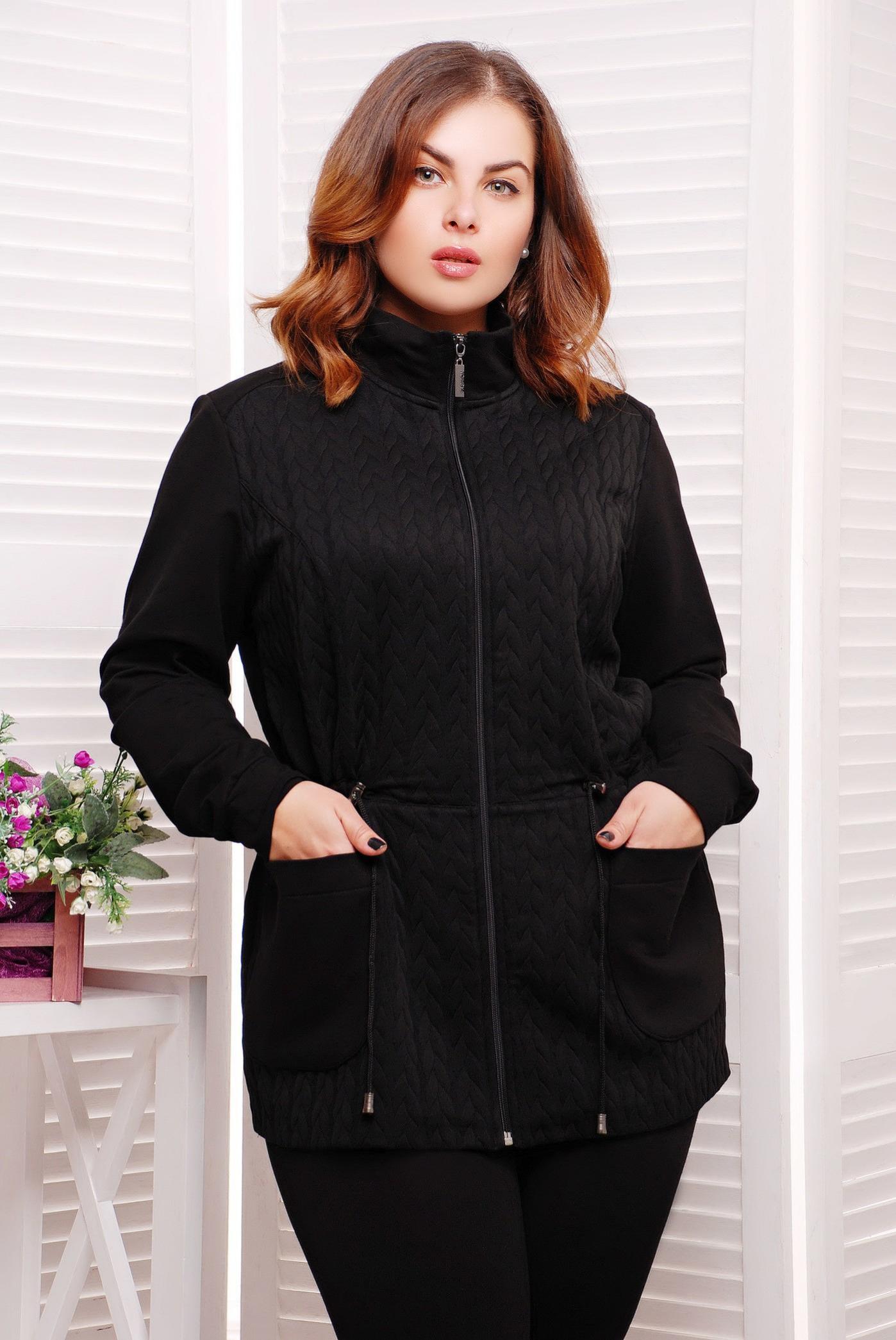 Кофта, напоминающая парку на молнии и с кулиской на поясе. Выполнена на основе комбинации турецкого трикотажа и трикотажа эмбо с формованным рисунком. Два накладных кармана и высокий ворот придают кофте комфорта. Отличный вариант для осенне-зимнего сезона.