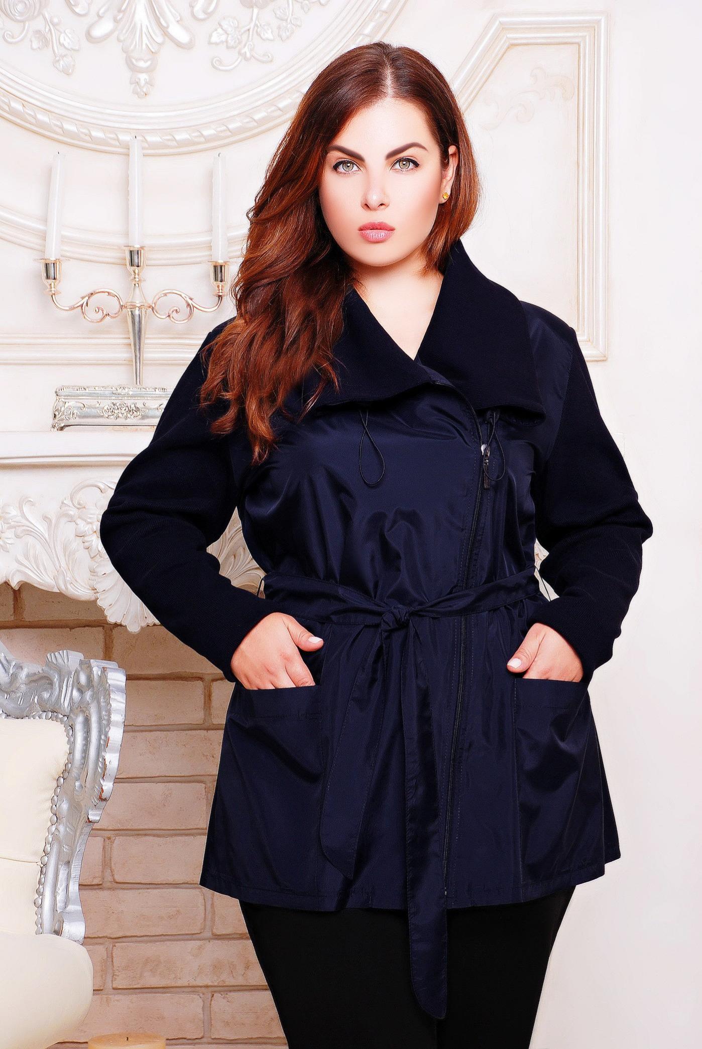 Классическая легкая ветровка на змейке и под поясок. Красивый отложной воротник с отделкой из вязанного хлопкового трикотажа и трикотажные рукава придают уюта изделию.