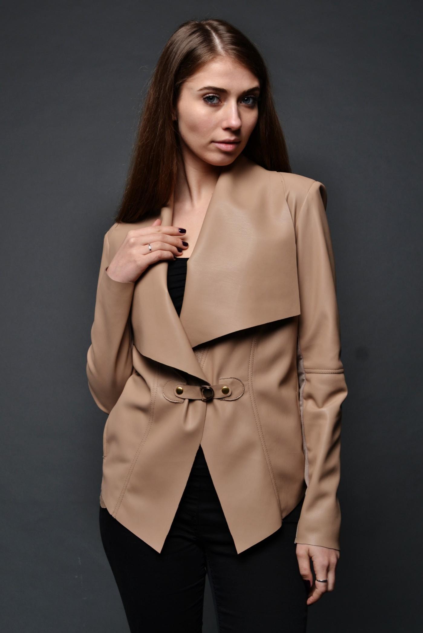 Стильный блейзер с отложным воротником-лацканом. Выполнен из качественной, приятной к телу эко кожи на замшевой основе. Классический вариант, который можно носить с брюками и джинсами, майками и топами. Приталенный пиджак, гармонирующий с юбками и платьями разной длины. Данное изделие подчеркнет женственность своей владелицы, придаст ей элегантный вид, и станет универсальной вещью, которую с удовольствием надевают на прогулку или на работу, слегка смягчая строгость дресс-кода.