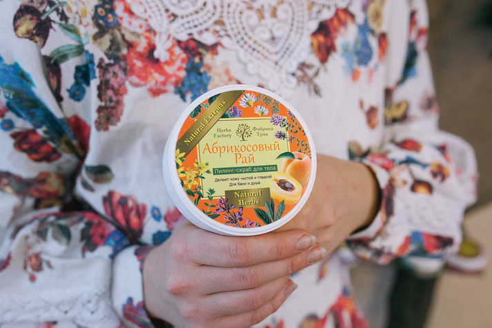 В состав продукта входят наши российские травы и фруктовые косточки, благодаря чему скраб очищает кожу, делает ее более гладкой и шелковистой, усиливает кровоток, насыщает естественными природными микроэлементами, маслами и эфирами.