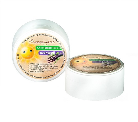 Шалфей используют для укрепления зубов и против кровоточивости десен. Порошок имеет приятный вкус шалфея.