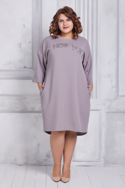 состав 100% полиэстер (трикотаж - креп) Платье свободное, с карманами Длина по спинке - 109см, по переду - 103см Длина рукава от горловины - 58см Платье украшено нашивкой из страз (NY)