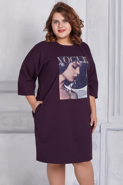 состав 100% полиэстер (трикотаж - креп) Платье свободное, с карманами Длина по спинке - 109см, по переду - 103см Длина рукава от горловины - 58см Платье украшено нашивкой из пайеток